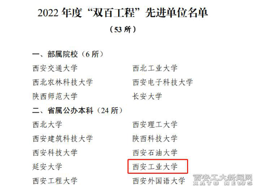 近日,中共陕西省委教育工委、陕西省教育厅印发了《关于表彰2022年度“双百工程”先进单位的通报》,我校获评2022年度全省“双百工程”先进单位。