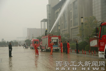 11月9日上午,全省高校火灾地震应急疏散逃生示范演练在我校未央校区成功举行。